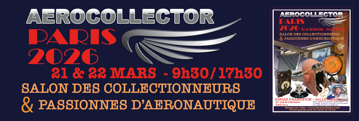 Chers Exposants,Nous sommes heureux de vous convier à la prochaine édition d’AEROCOLLECTOR qui aura lieu à :l'Espace Charenton -salle Ariane- Paris 12e, le samedi 21 et dimanche 22 mars 2026.Plus de 1000M² d'exposition vous attendent durant tout un week-end dans un espace récent qui offre tous les avantages (Installations fonctionnelles, sonorisation, Wifi, éclairages de hautes qualité, climatisation et point restauration/café).